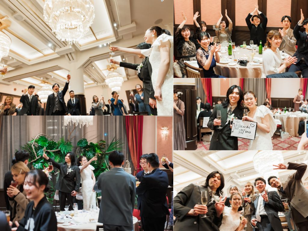 おふたりもゲストも最高の笑顔でグラスを交わし