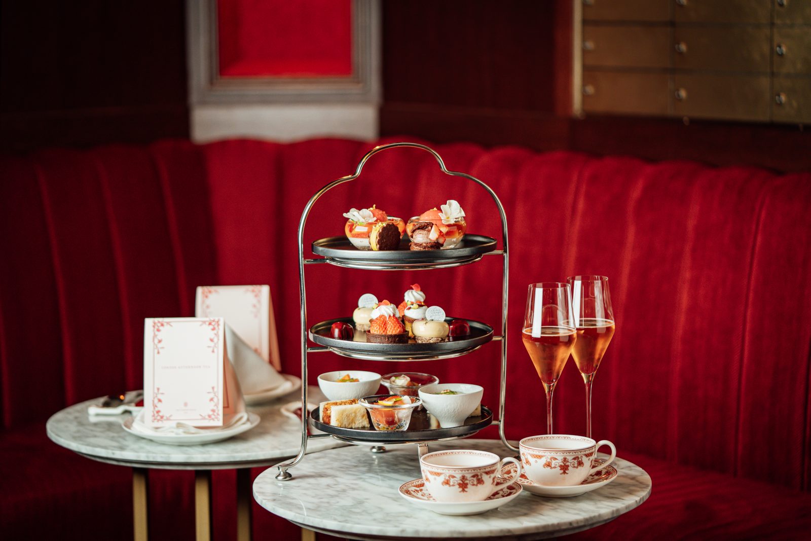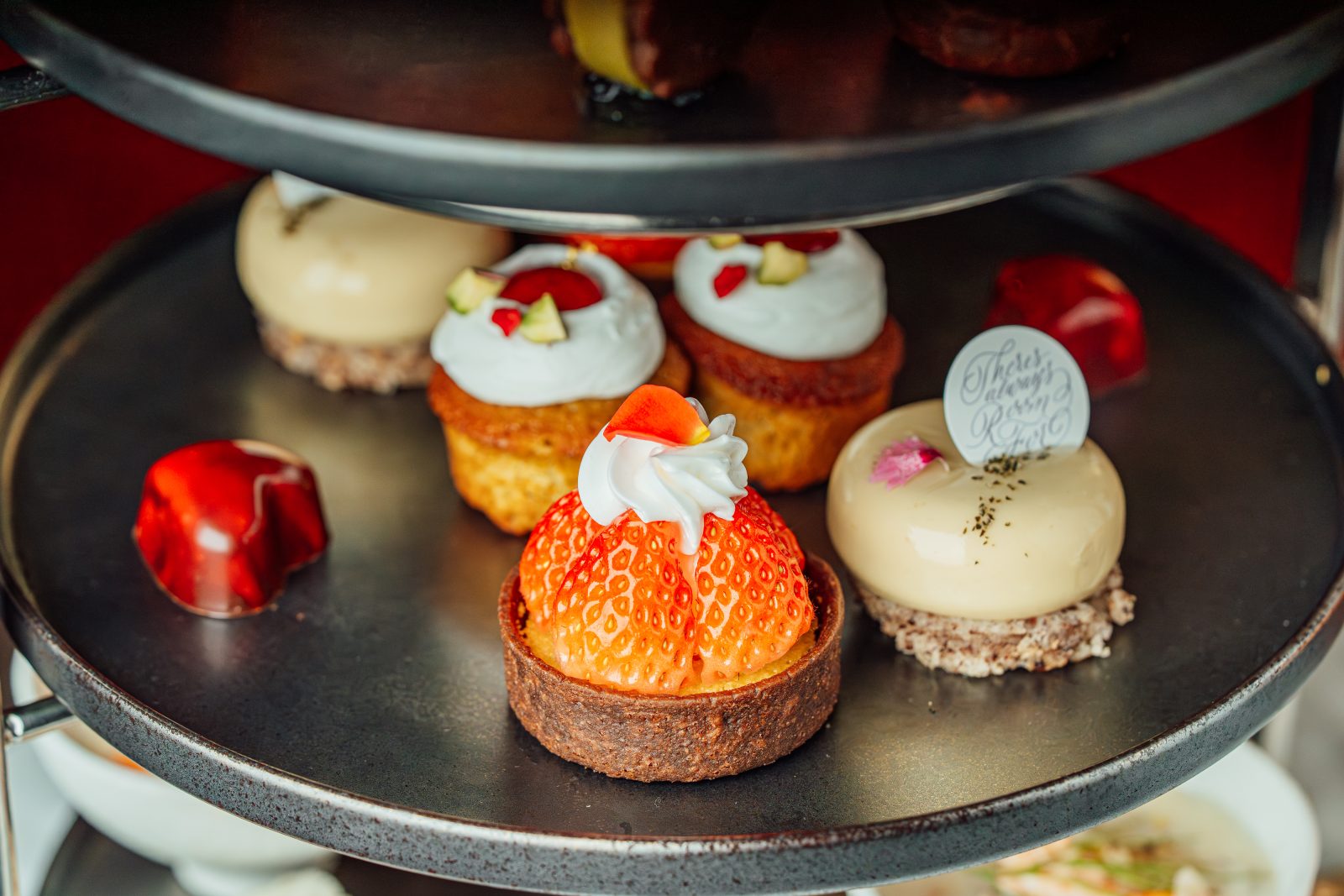 苺の瑞々しさとショコラの芳醇なコクを、段ごとに表情を変えて楽しむアフタヌーンティー。