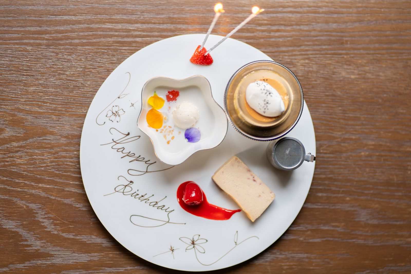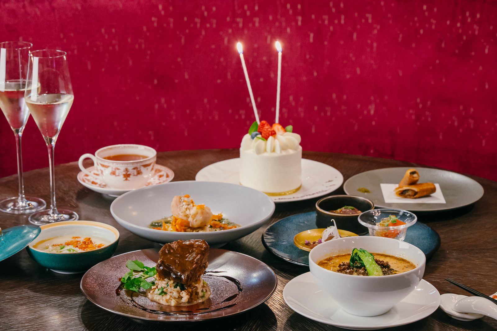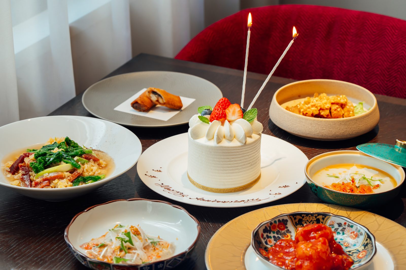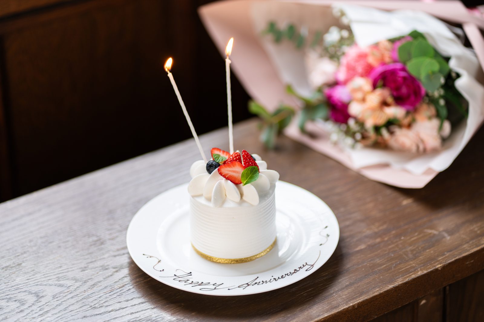 ランチタイム・ディナータイム共に乾杯酒とメッセージ付きのホールケーキやお花束が付いた特別プランをご用意しております。